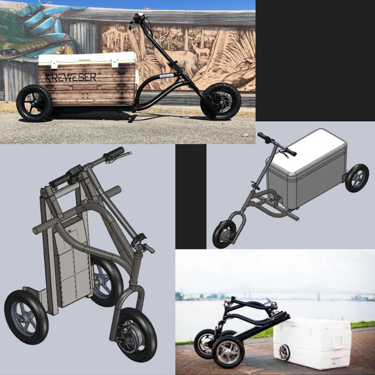 Development of an electric scooter. Detailed mechanical design of hinge to allow scooter to fold in half. Performed loading analysis to meet customer requirementsMore information at: Kreweser