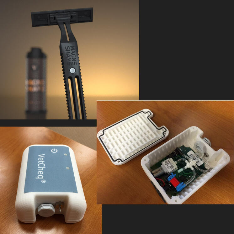 Development of various consumer products. These pictures show concepts for a travel razor blade handle, and a monitoring device made for tracking horse's health and conditionMore information at: VetCheq